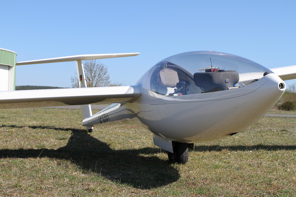Diese DG 300 Club Elan ist gut geeignet für den Einstieg in den Streckenflug über Land. Das Flugzeug ist privat, steht aber allen aktiven Segelfliegern des Vereins seit dem Jahr 2024 zur Verfügung. Der Hersteller ist Glaser-Dirks und es wurde 1990 gebaut.