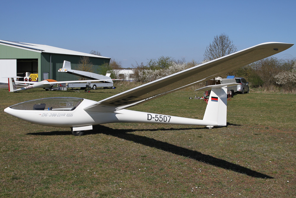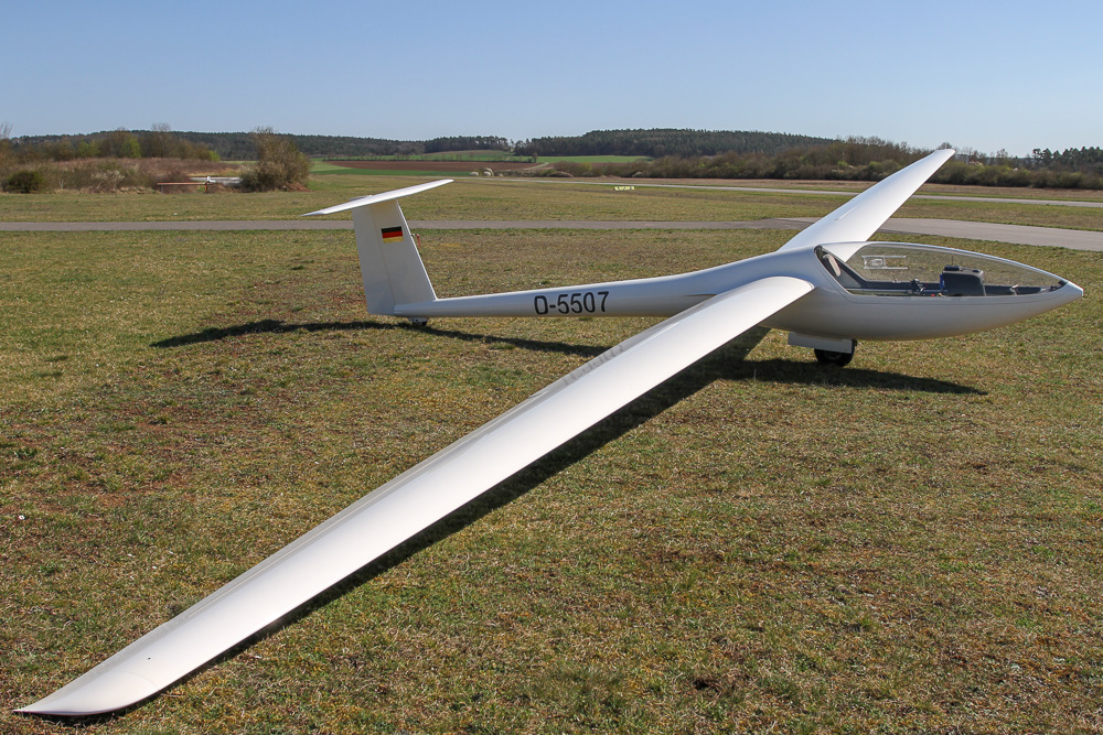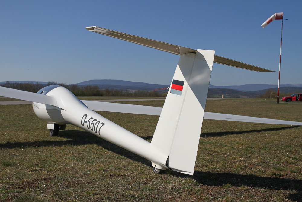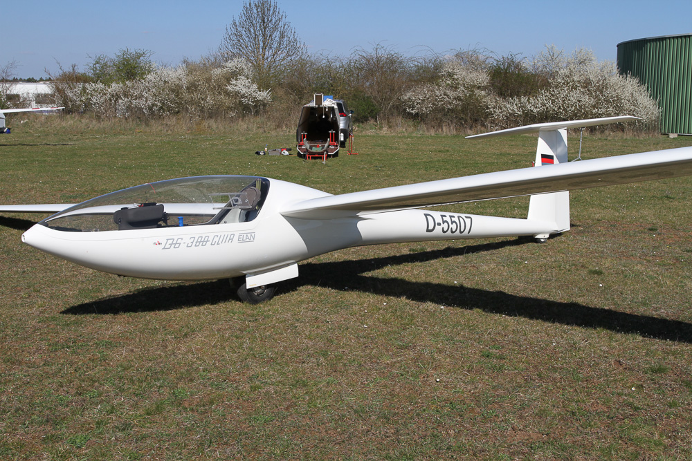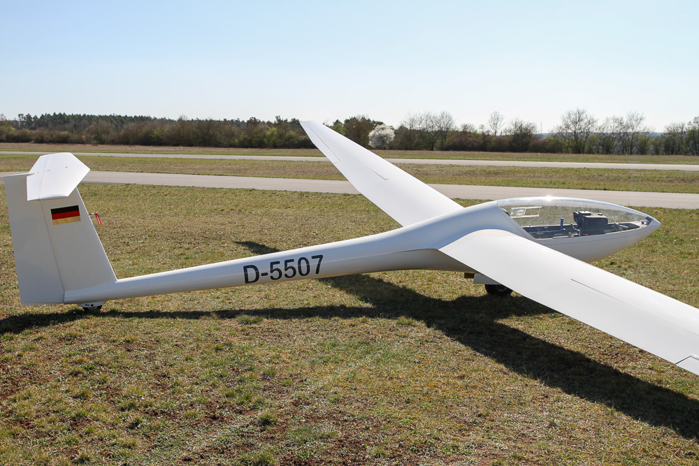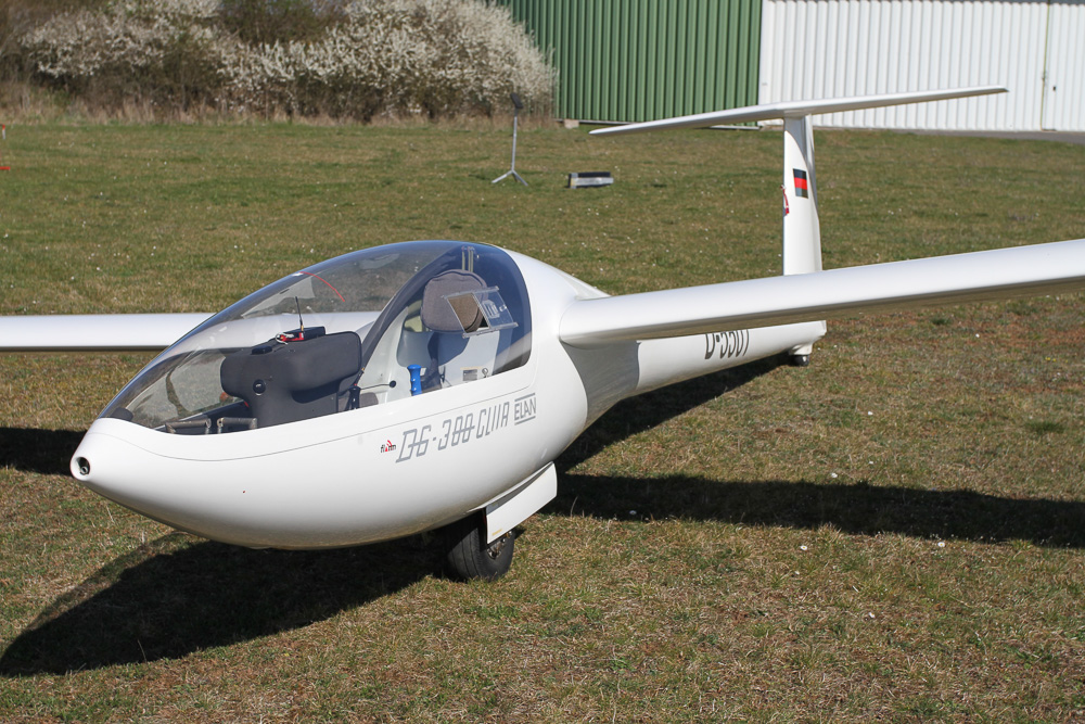 Diese DG 300 Club Elan ist gut geeignet für den Einstieg in den Streckenflug über Land. Das Flugzeug ist privat, steht aber allen aktiven Segelfliegern des Vereins seit dem Jahr 2024 zur Verfügung. Der Hersteller ist Glaser-Dirks und es wurde 1990 gebaut.